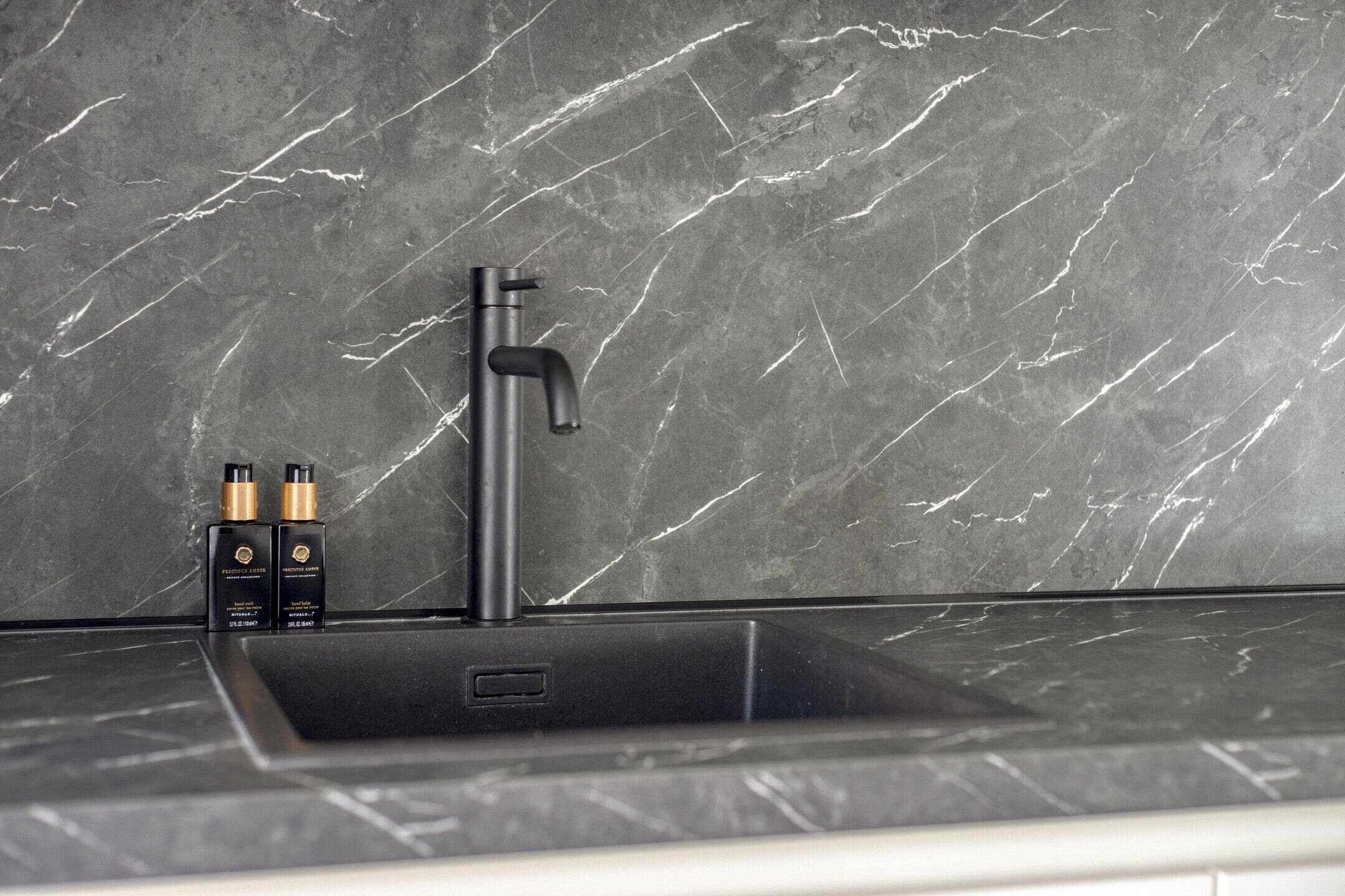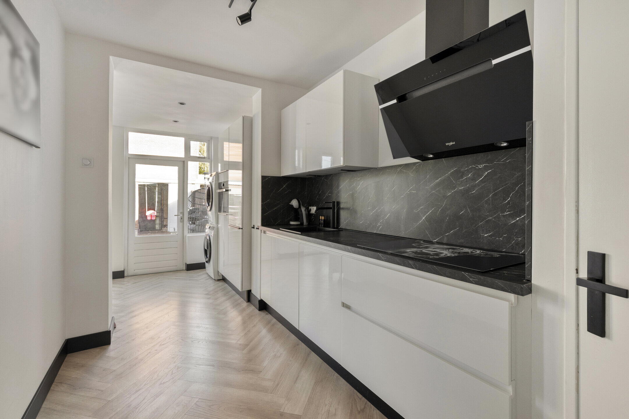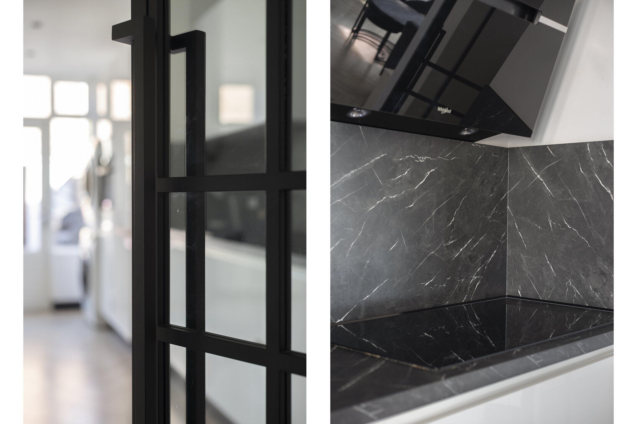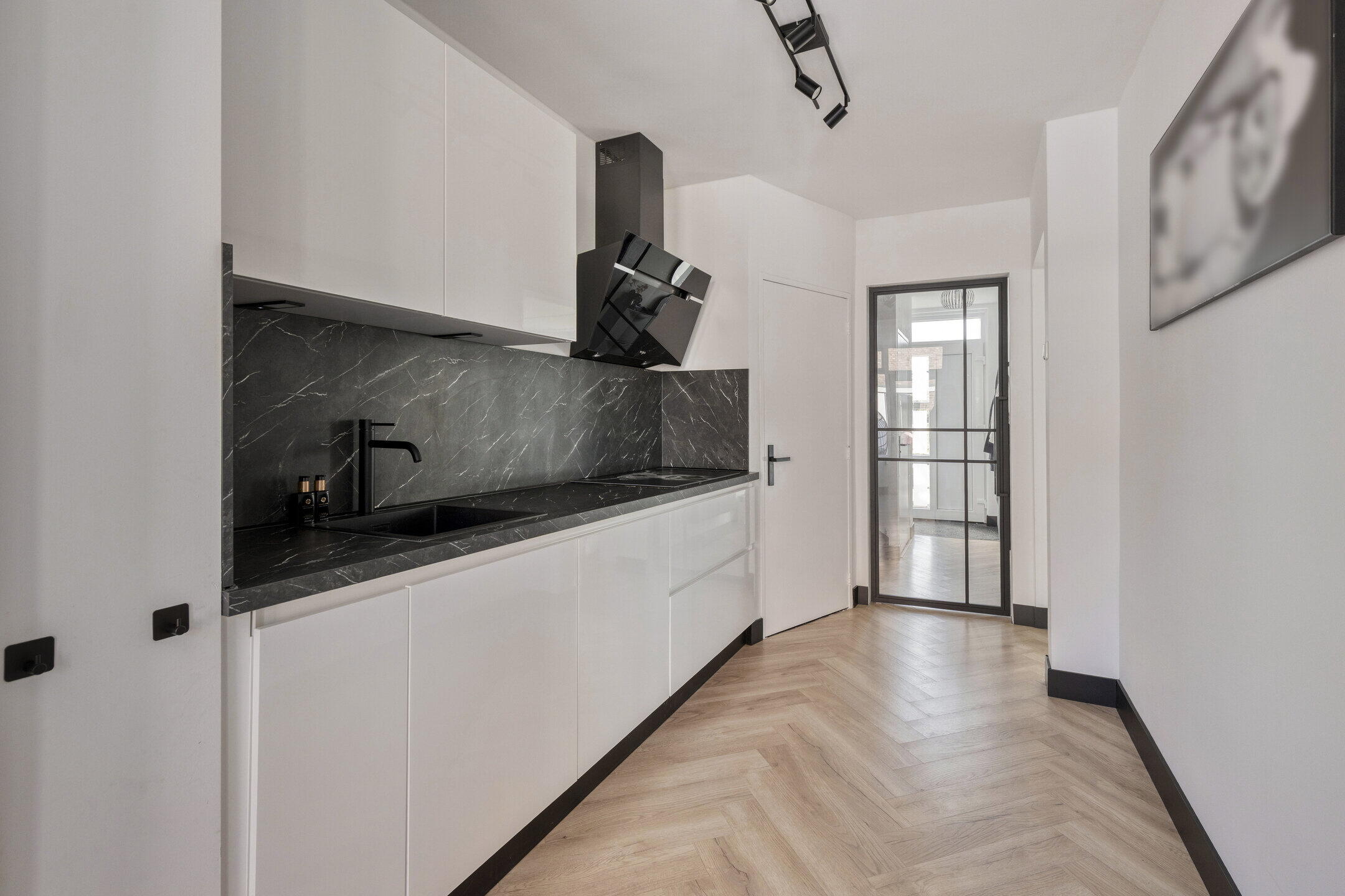 De woonkamer is ruim opgezet en heerlijk licht dankzij de grote raampartijen. De gestucte wanden zorgen voor een strakke afwerking, terwijl de open haard een warme en gezellige sfeer toevoegt. Aan de ene zijde creëer je moeiteloos een royale zithoek, terwijl er aan de andere kant ruimte is voor een sfeervolle eethoek. De afgesloten aanbouw biedt extra mogelijkheden: denk aan een kantoor, hobbyruimte of speelkamer. Deze ruimte loopt naadloos over in de keuken en zorgt samen met de grote ramen en deuren van vloer tot plafond voor een bijzonder ruimtelijk gevoel en een prachtige lichtinval. De keuken is modern en stijlvol uitgevoerd met witte kastfronten en een zwart marmeren werkblad. Uiteraard is deze voorzien van diverse inbouwapparatuur, waaronder een inductiekookplaat, helemaal van deze tijd!